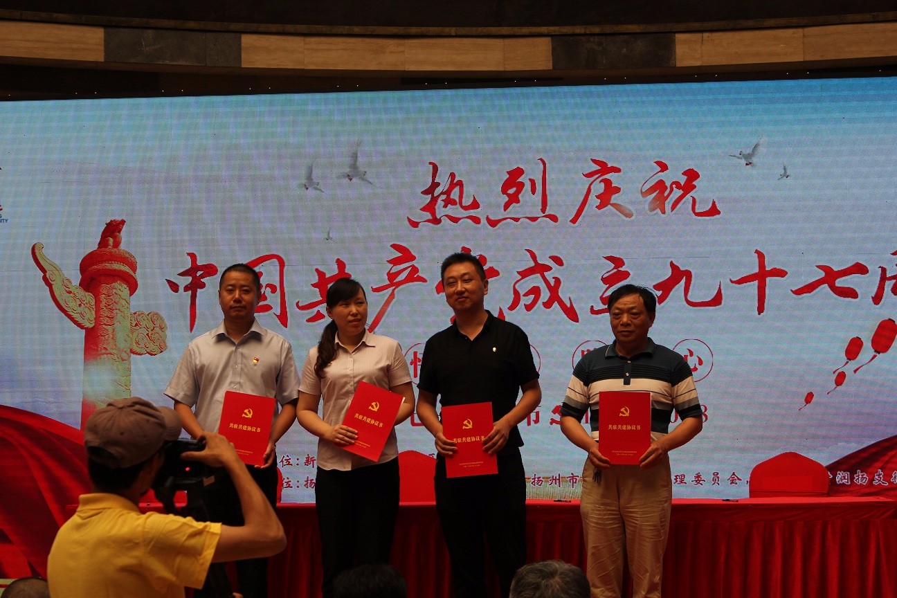 為隆重紀(jì)念中國共產(chǎn)黨建黨97周年,回顧中國共產(chǎn)黨走過的光輝歷程,歌頌建黨以來的豐功偉業(yè)和輝煌成就,激發(fā)居民愛黨、愛祖國、愛家鄉(xiāng)的熱情,殷巷社區(qū)黨總支和居委會決定舉行慶“七一”文藝演出?;顒娱_始由殷巷社區(qū)黨總支書記趙龍致活動開幕詞,隨后由殷巷社區(qū)代表與西區(qū)新城管委會代表、我公司代表、江蘇銀行代表簽訂共建協(xié)議,實現(xiàn)社區(qū)與單位在黨的組織建設(shè)上聯(lián)建,在社區(qū)重大工作上聯(lián)做,在公益事業(yè)上聯(lián)辦,在黨員教育管理上聯(lián)管,在黨建主題活動上聯(lián)動,在精神文明創(chuàng)建上聯(lián)創(chuàng),在社區(qū)文化活動上聯(lián)誼。