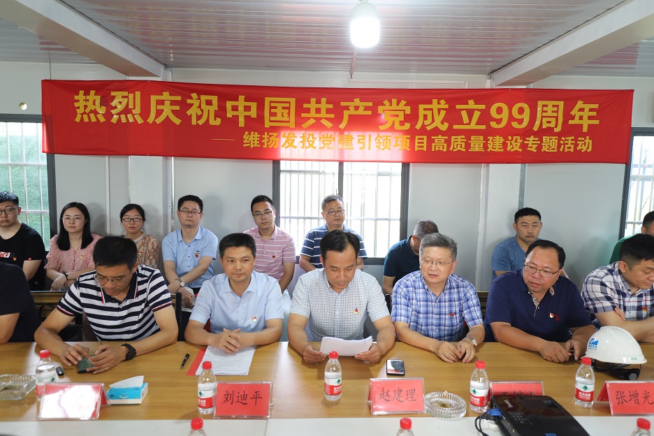系列活動二:黨建引領項目高質量建設專題活動 6月30日下午,公司黨支部組織公司全體黨員、預備黨員、發(fā)展對象、入黨積極分子前往創(chuàng)業(yè)路(真州路-揚冶路)道路工程項目部,開展慶祝建黨99周年專題活動。 本次活動共有五項議程:一是聽取項目部匯報;二是維揚發(fā)投與華泰路橋有關負責人就創(chuàng)業(yè)路項目建設的安全生產、揚塵管控、質量控制、建設進度等方面做了詳細交流;三是由公司黨支部書記、董事長劉迪平同志帶領全體黨員重溫入黨誓詞;四是由劉迪平同志為項目部黨員代表授黨員突擊隊隊旗;五是公司黨支部書記講話。 劉迪平強調:“我們要立足項目高質量建設,強化黨建引領,帶動項目前期工作更加精心,方案設計更加精當,工程造價更加精準,項目管理更加精細,維護保養(yǎng)更加精良,讓每一個維揚發(fā)投建設項目都打上‘精品’的印記?!?/p>